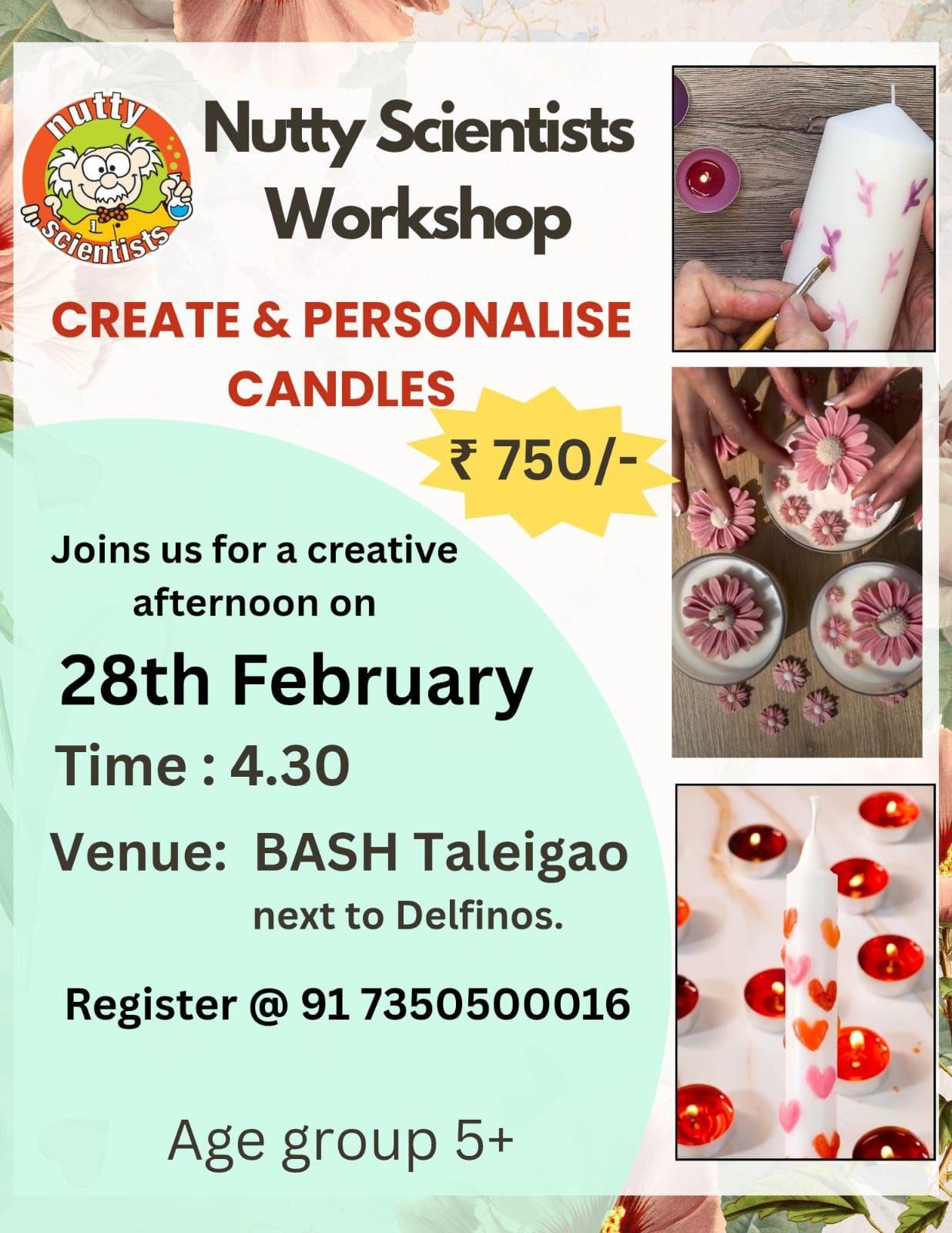 Register @ 91 7350500016🕯️ Personalise & Decorate a Candle With Us! 🕯️ Join us for a fun, creative candle decorating workshop where you design a candle ! And take it home! 750/- per participant ✨ 📅 28th March 📍 Bash Taleigao ⚡4.30pm - 6.pm Limited spots available — register now and light up your creativity! 🌟 Age Group 5+ Register @ 91 73505000160 Comentários 0 Compartilhamentos 403 Visualizações 0 Anterior1