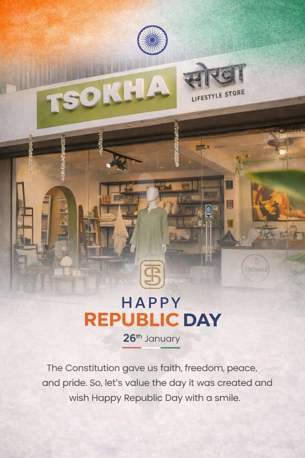 TsokhaHappy Republic Day 🇮🇳 Today is a gentle reminder of the values that hold us together — freedom of thought, respect for diversity, and pride in who we are. At Tsokha, we celebrate India not just as a nation, but as a feeling — woven through our artisans, our stories, our culture, and our conscious choices. Thank you for being part of this journey, for supporting local, handmade, and heartfelt work, and for believing in what Tsokha stands for. Wishing you and your loved ones a day filled with gratitude, warmth, and quiet pride. With love & gratitude, Sparsha Tsokha 🤍0 Comments 0 Shares 346 Views 0 Reviews2