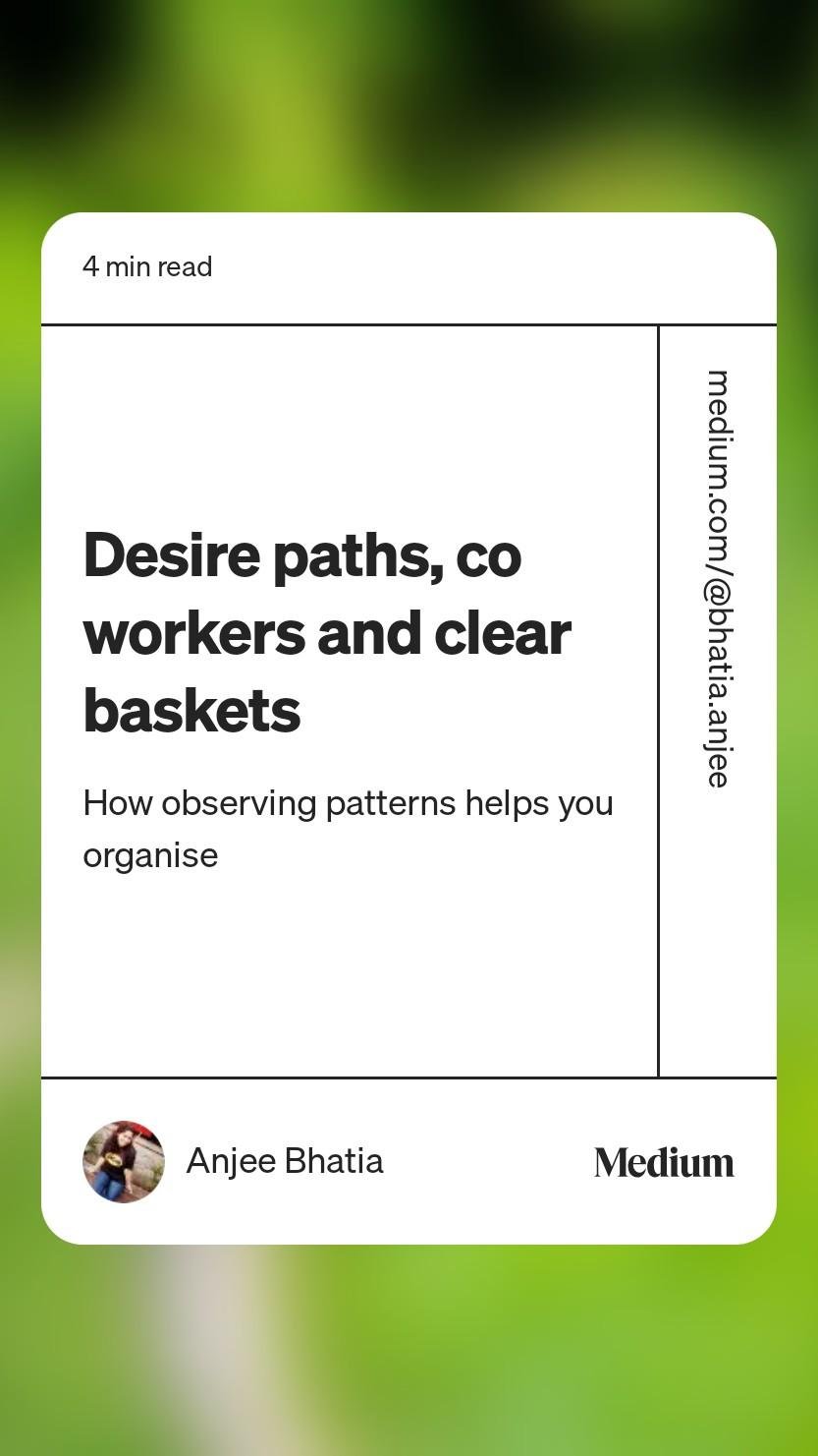 https://medium.com/@bhatia.anjee/desire-paths-co-workers-and-clear-baskets-ade1c31db220How observing patterns help you organise. https://medium.com/@bhatia.anjee/desire-paths-co-workers-and-clear-baskets-ade1c31db2200 Commenti 0 condivisioni 161 Views 0 Anteprima -