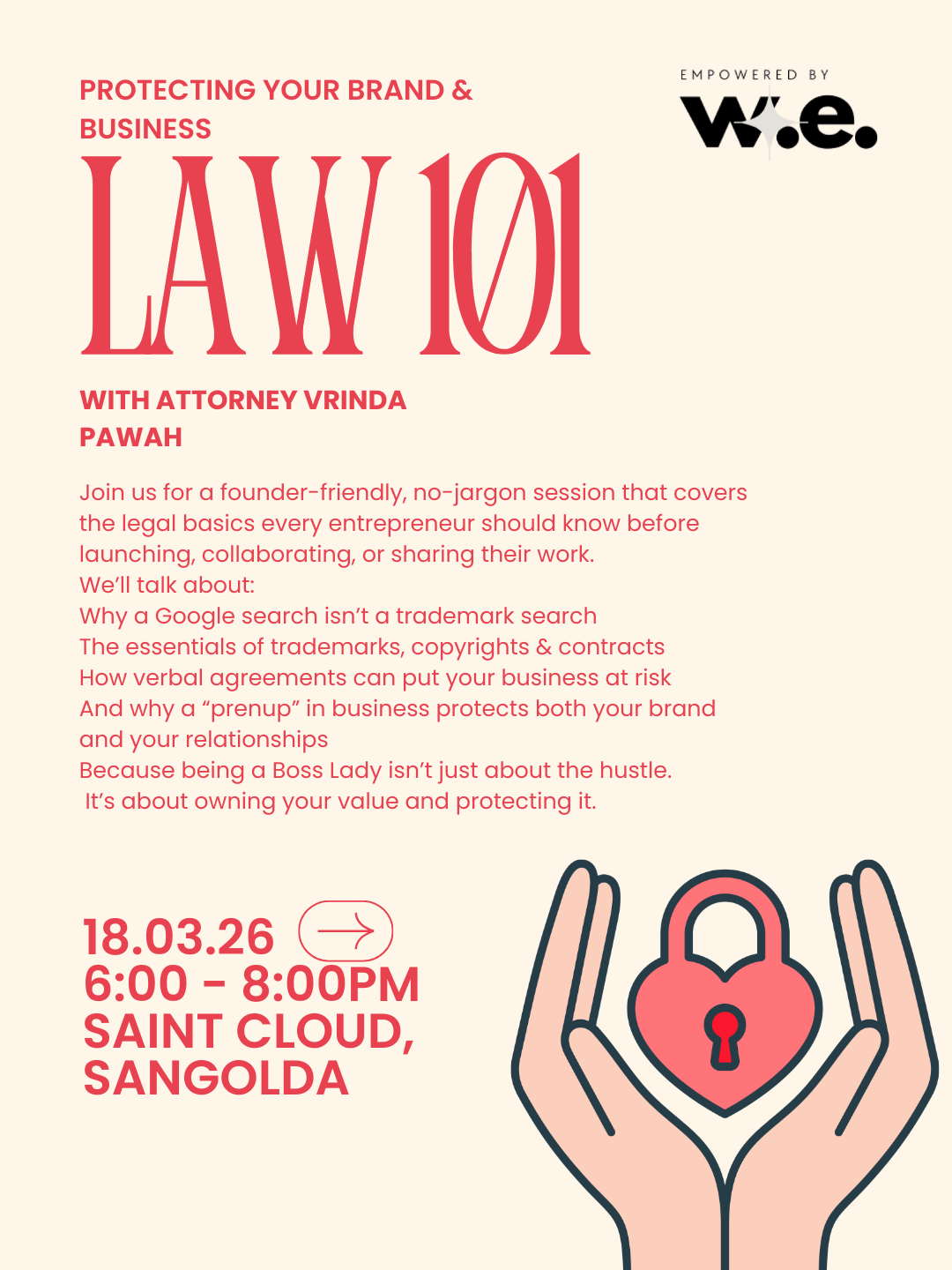 Join attorney Vrinda Pahwa for a founder-friendly, no-jargon session that covers the legal basics every entrepreneur should know before launching, collaborating, or sharing their work.